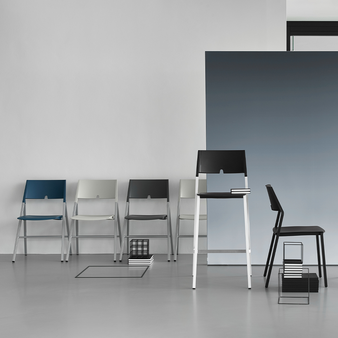 Die Axa Familie bringt Harmonie in jedes Interieur mit einem Klappstuhl, einem Vierfußstuhl und einem Barhocker, die alle dasselbe elegante Design teilen. Jedes Modell bietet bequemen Halt und eine langlebige Leistung, wodurch die Kollektion ideal für Besprechungsräume, Gastronomiebereiche und multifunktionale Arbeitsumgebungen geeignet ist.