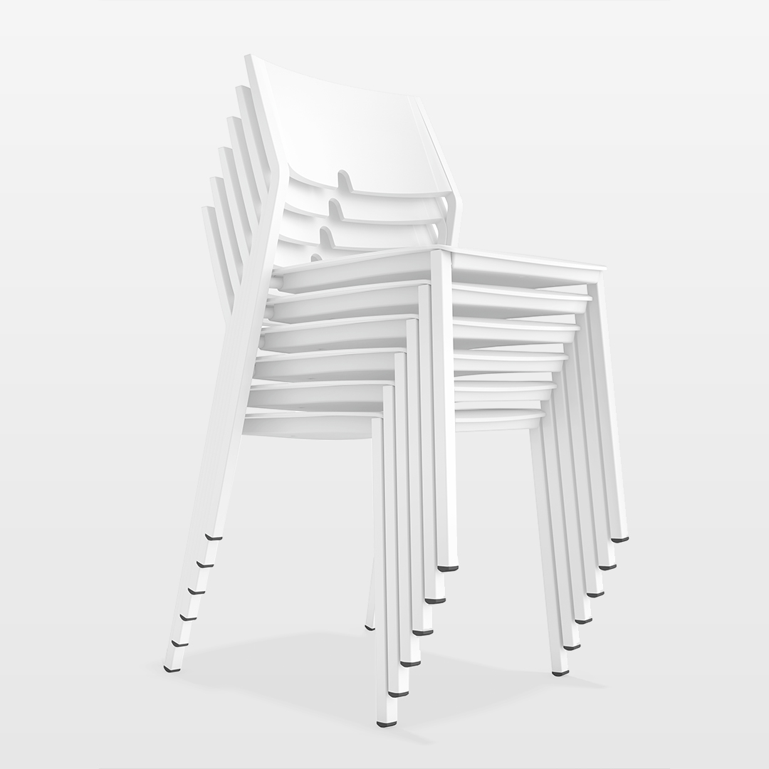 Der Axa III Stuhl ist bis zu 6 Stück stapelbar. Wie der Barhocker verfügt er über eine formschöne Abdeckplatte, die ein gerades und stabiles Stapeln gewährleistet.