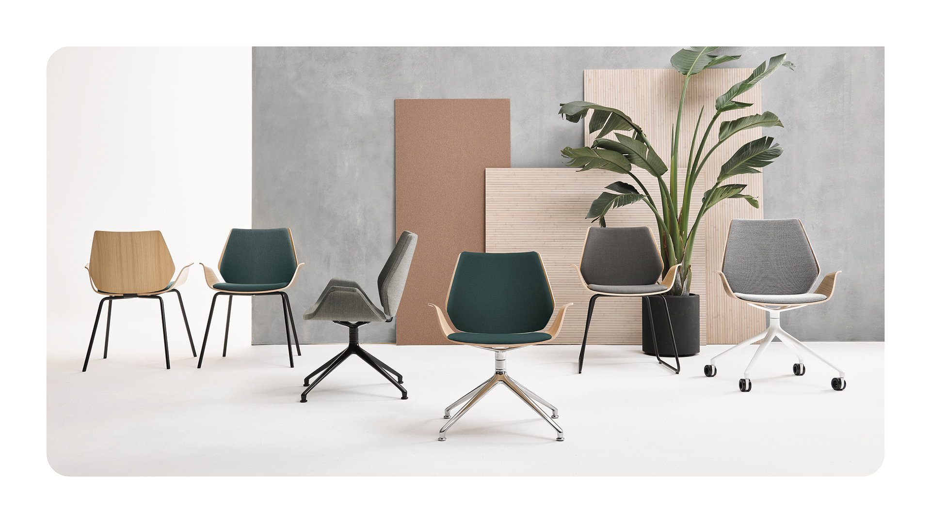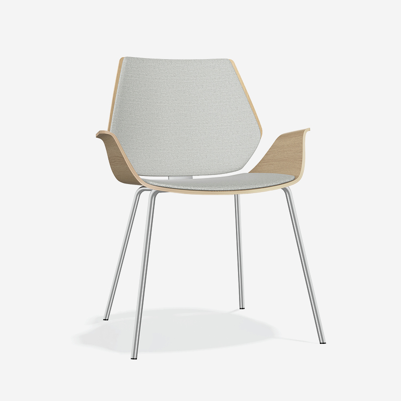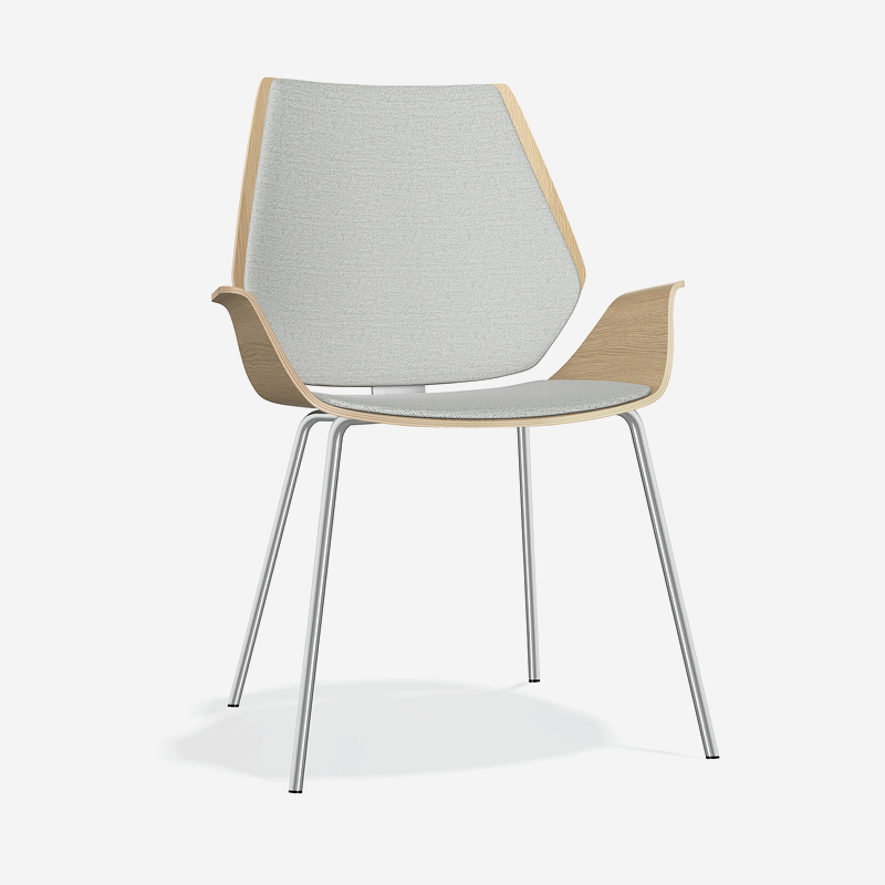 Erhältlich mit Eichen- oder Nussbaumfurnier bringt Centuro eine warme, natürliche Ausstrahlung in moderne Interieurs. Gepolsterte Sitz- und Rückenvarianten oder eine vollständig gepolsterte Schale erhöhen den Komfort und bewahren zugleich die charakteristischen Linien des Stuhls. Dieses ausgewogene Zusammenspiel von Materialität und Handwerkskunst macht Centuro zu einer ausdrucksstarken und zugleich funktionalen Ergänzung für Besprechungsräume, Lounges und Empfangsbereiche.