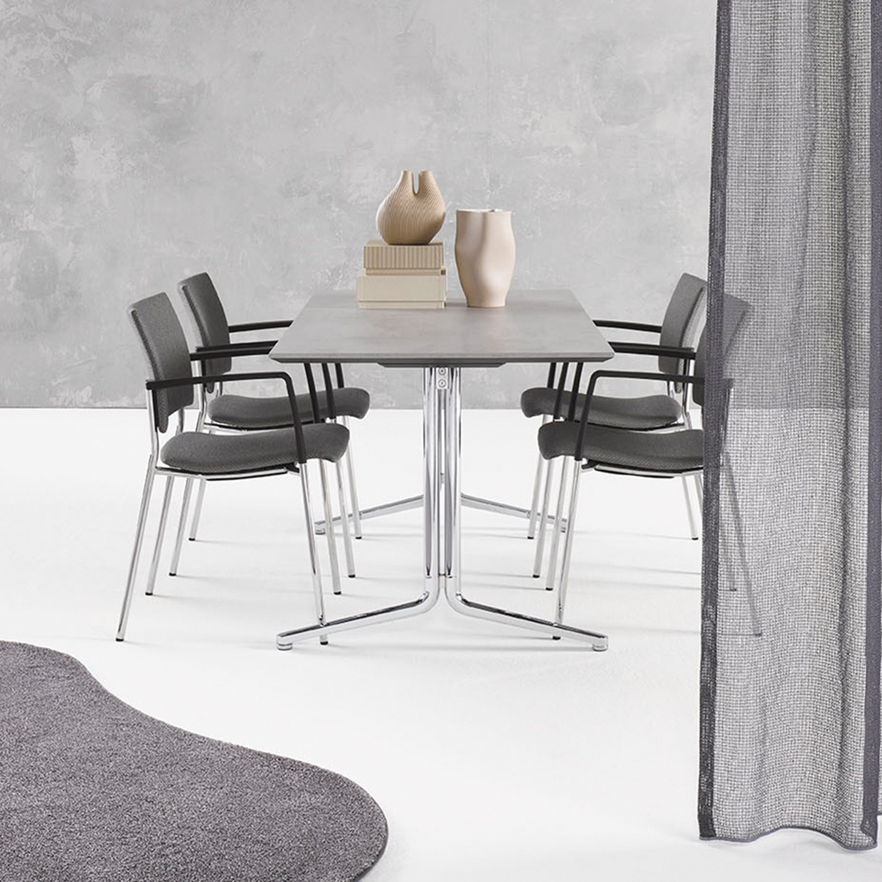 Dank seines leichten Erscheinungsbildes, der effizienten Stapelbarkeit und der intelligenten Verbindungsmöglichkeiten eignet sich Feniks ideal für öffentliche Besprechungsräume und Gesundheitseinrichtungen, in denen Flexibilität entscheidend ist. Der Stuhl lässt sich schnell aufstellen, verbinden oder verstauen, sodass sich Raumkonzepte einfach an wechselnde Gruppengrößen und Funktionen anpassen lassen, ohne Komfort oder optische Einheitlichkeit zu beeinträchtigen.