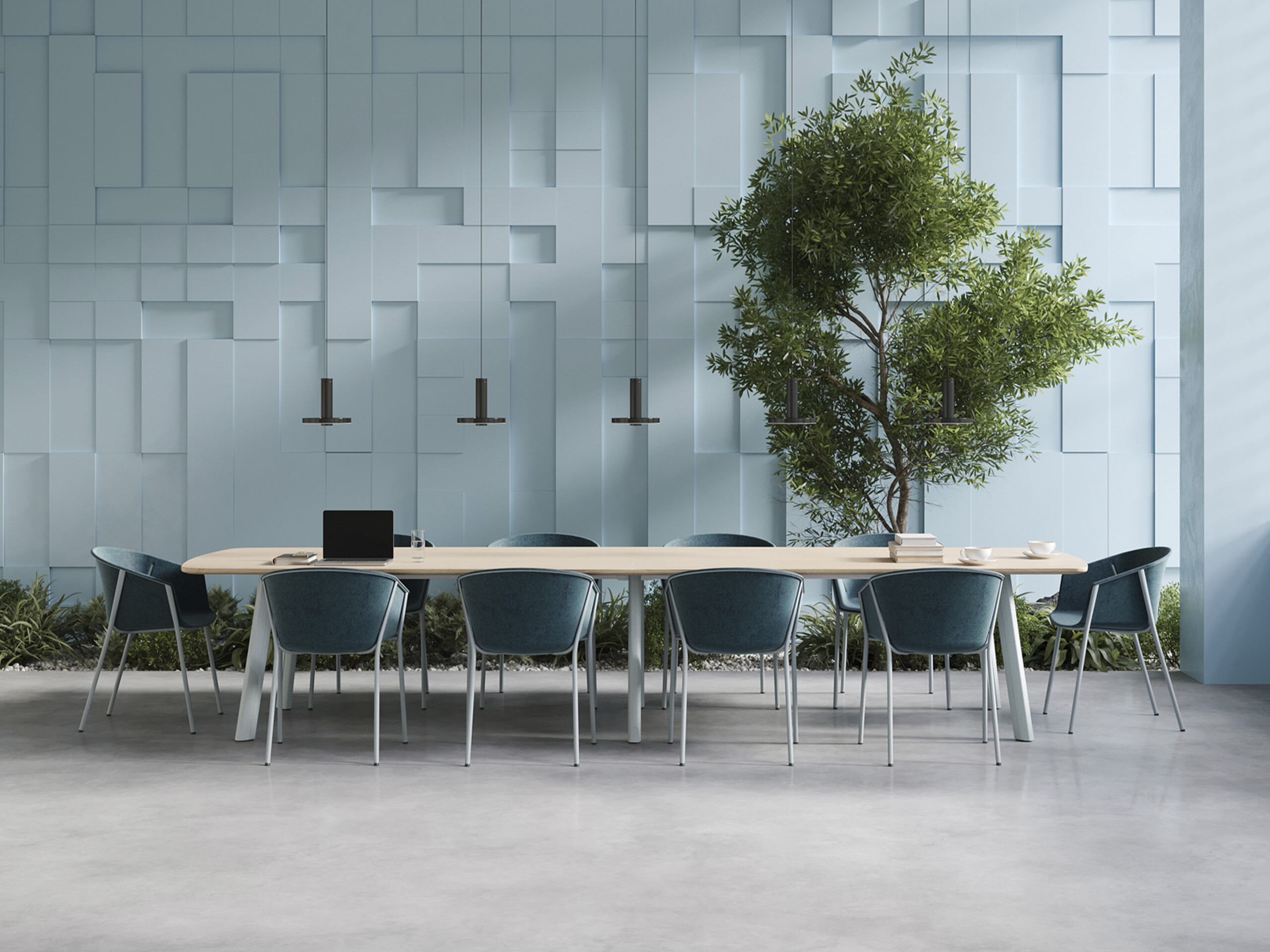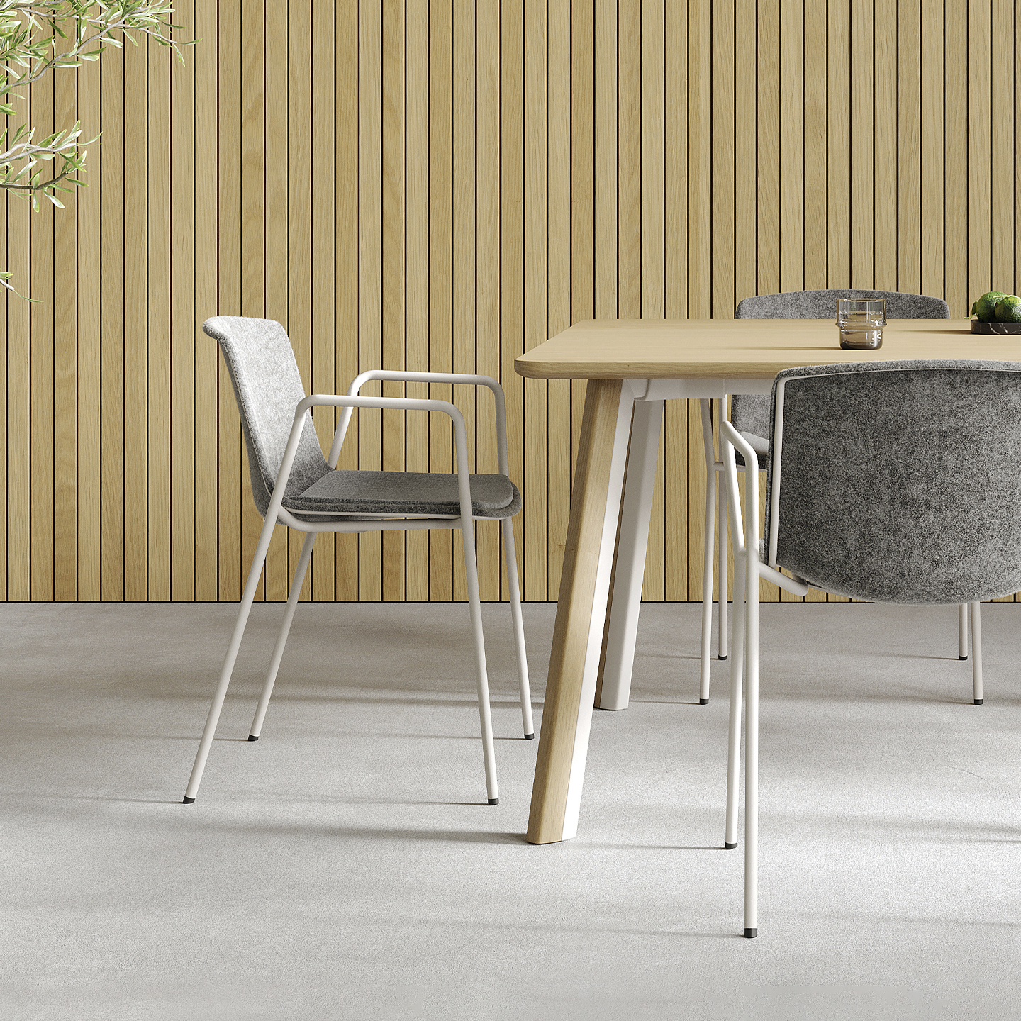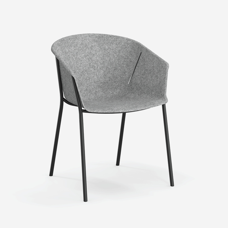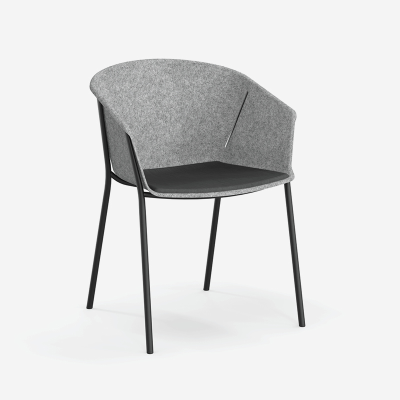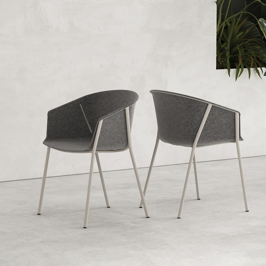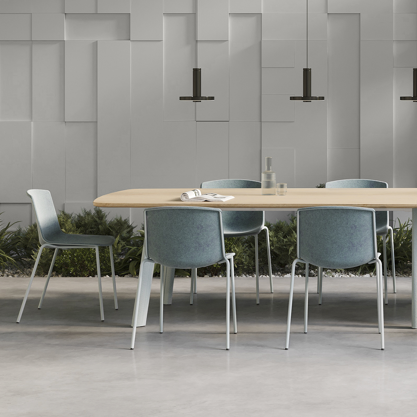 Für jeden Geschäftsbereich ist Omega eine vielseitige Sitzmöbelserie mit einer Filzschale aus bis zu 100 % recyceltem PET, erhältlich in einer großen Auswahl an Modellen, Ausführungen und Materialien.