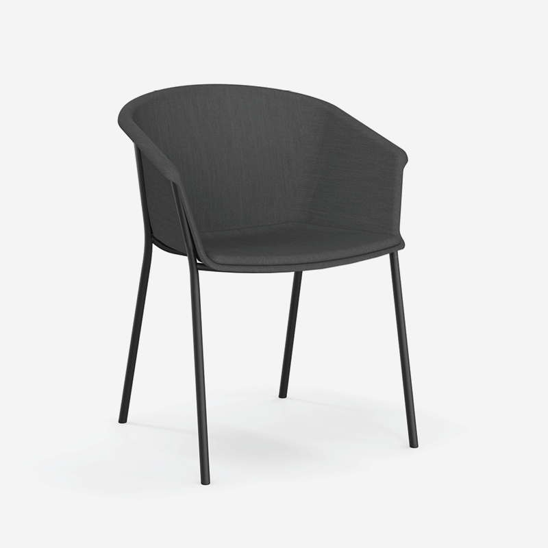 Für alle, die zusätzlichen Komfort und Luxus suchen, gibt es eine komplett gepolsterte Omega. Diese Version bietet ein hochwertiges Sitzerlebnis mit weicher Polsterung, die die klaren Linien und das moderne Design des Stuhls betont.