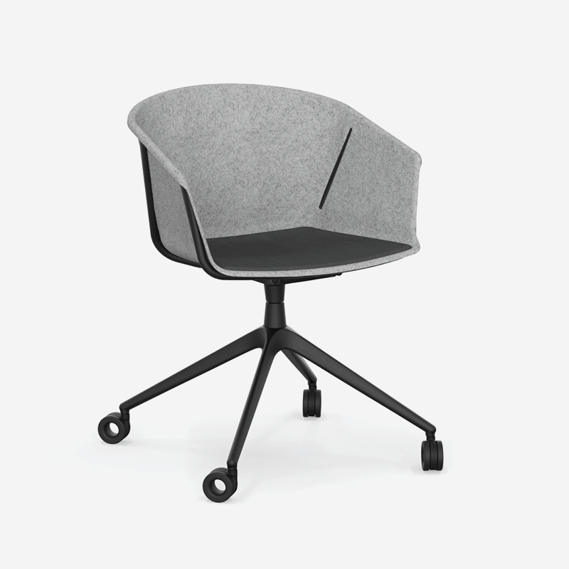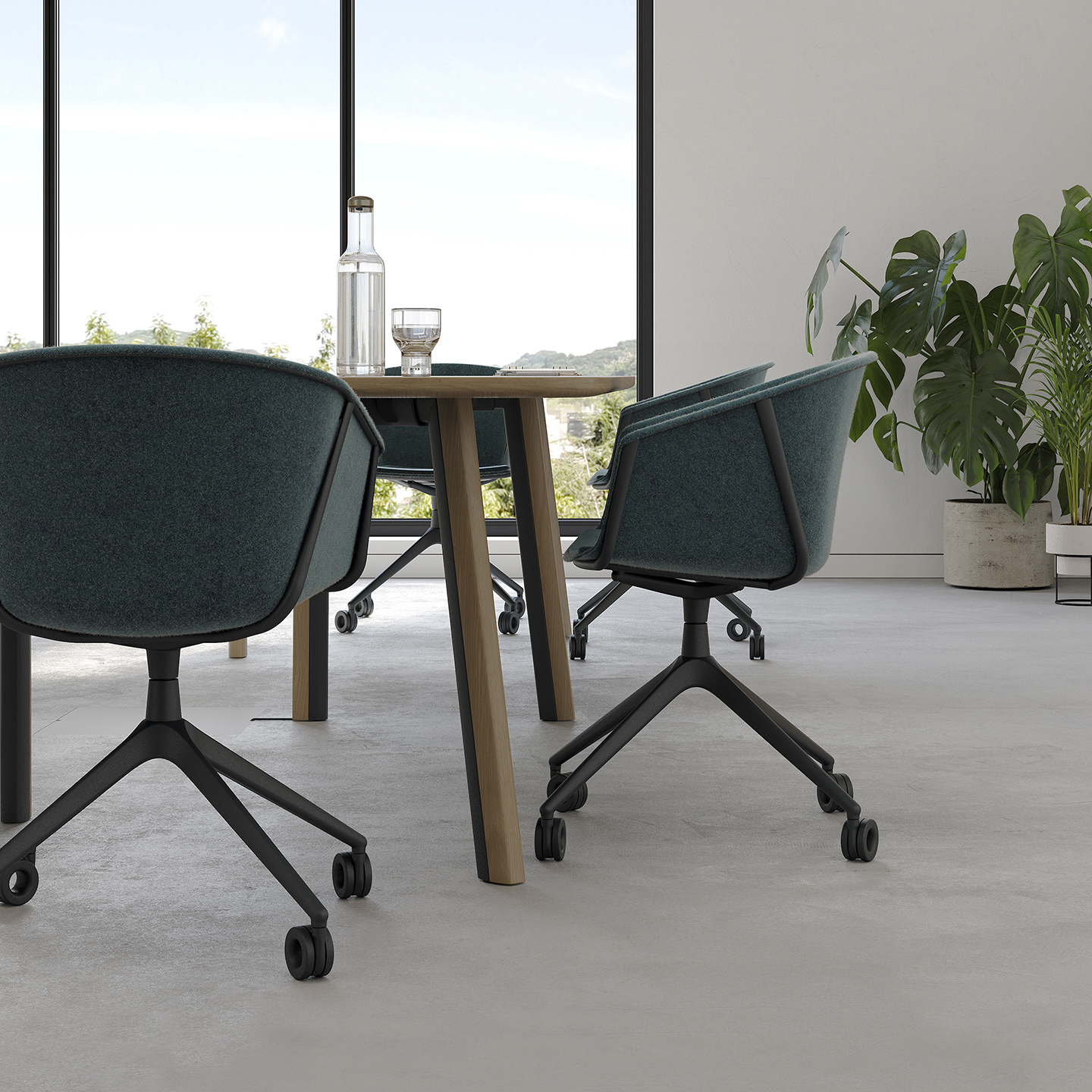 Für jeden Geschäftsbereich ist Omega eine vielseitige Sitzmöbelserie mit einer Filzschale aus bis zu 100 % recyceltem PET, erhältlich in einer großen Auswahl an Modellen, Ausführungen und Materialien.