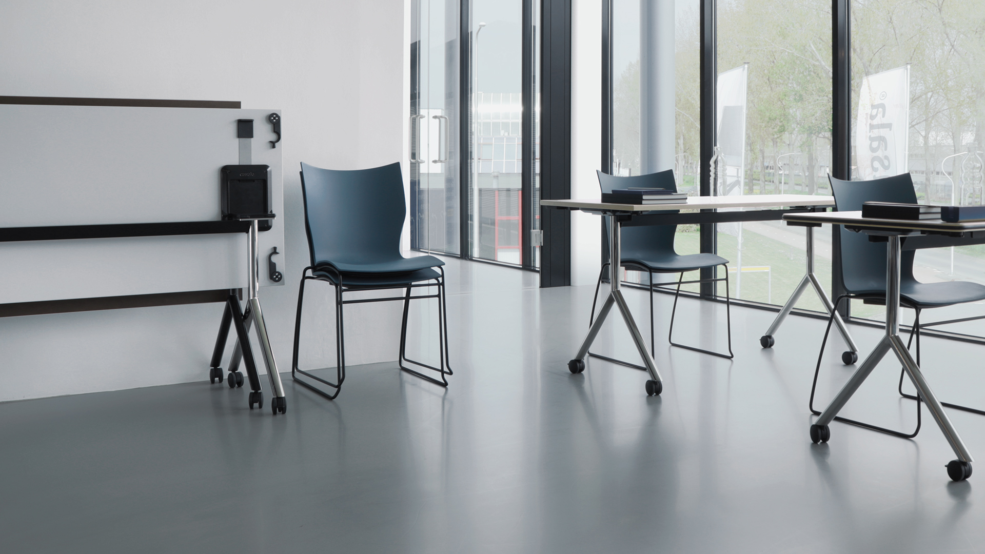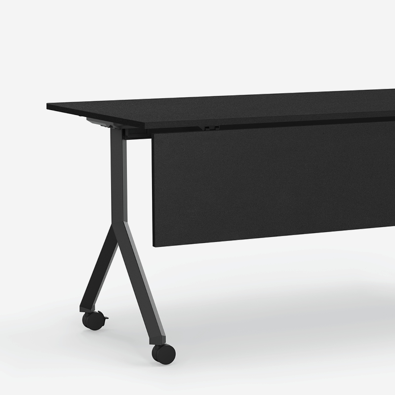 met frontpaneelHet optionele frontpaneel geeft de Labda Fliptop klaptafel extra privacy en een verfijnde uitstraling, doordat kabels en tafelpoten netjes uit het zicht blijven. Ook met het frontpaneel blijft de Labda Fliptop tafel praktisch in gebruik: de tafels kunnen nog steeds genest worden opgeslagen, waardoor ruimte-efficiëntie en gebruikscomfort perfect samenkomen. Ideaal voor flexibele opstellingen in vergaderruimtes, trainingsomgevingen en multifunctionele ruimtes.