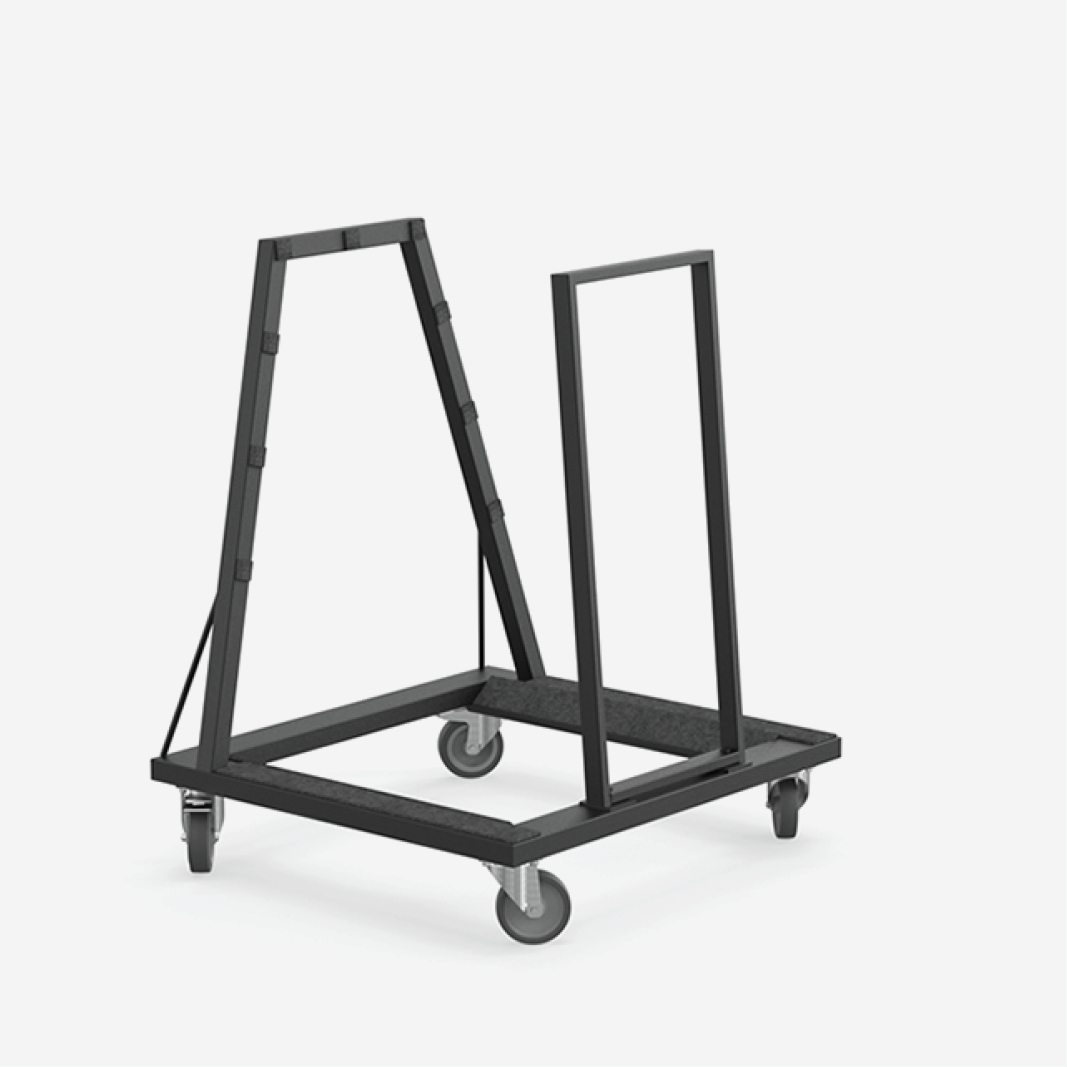 Het unieke klapsysteem onderscheidt zich doordat de tafelpoten tijdens het in- en uitklappen langs elkaar schuiven. Dit resulteert in een uitzonderlijk compacte, vlakke stapel, waardoor de tafel zeer ruimte-efficiënt wordt opgeslagen. Tot wel 10 Lacrosse tafels kunnen op een transportwagen worden geplaatst voor compact transport en opslag, zowel in horizontale als verticale positie. Dit maakt de handling eenvoudig en efficiënt en optimaliseert de ruimte tijdens transport en opslag.