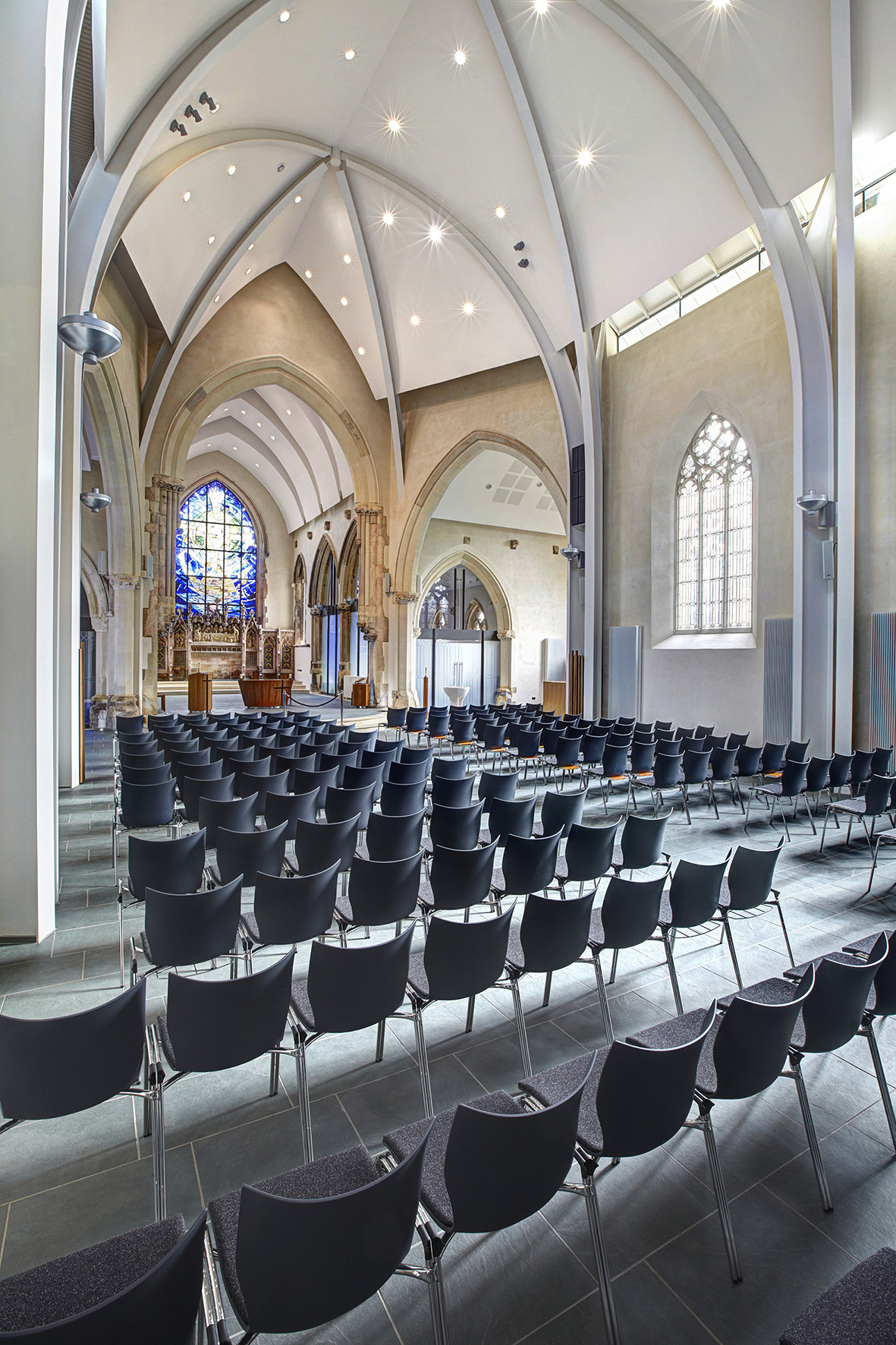Het Lynx-koppelingssysteem is ontworpen voor een snelle en moeiteloze werking. Til de stoel eenvoudig op en verschuif deze iets naar links; de stoelen koppelen veilig en vormen een stabiele rij. Alle Lynx-stoelvarianten, met of zonder armleuningen, kunnen onderling gekoppeld worden, waardoor maximale flexibiliteit wordt gegarandeerd bij verschillende opstellingen in zalen, kerken en congreslocaties.