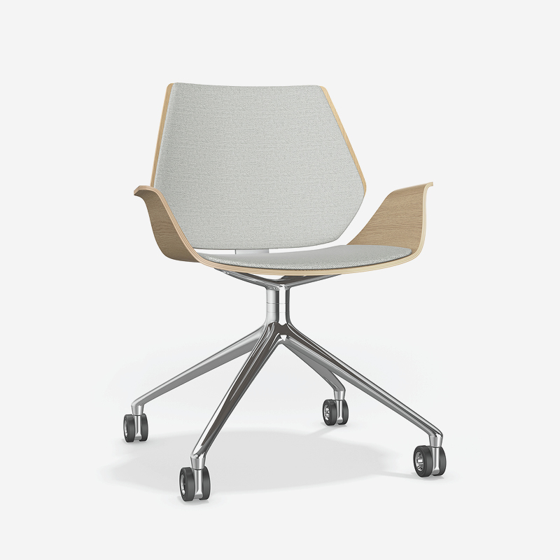 Available in oak or walnut veneer, Centuro introduces a warm, natural expression into modern interiors. Upholstered seat and back options or a fully upholstered shell enhance comfort while preserving the chair’s characteristic lines. This balance of materiality and craftsmanship makes Centuro a striking yet functional addition to meeting rooms, lounges and reception areas.