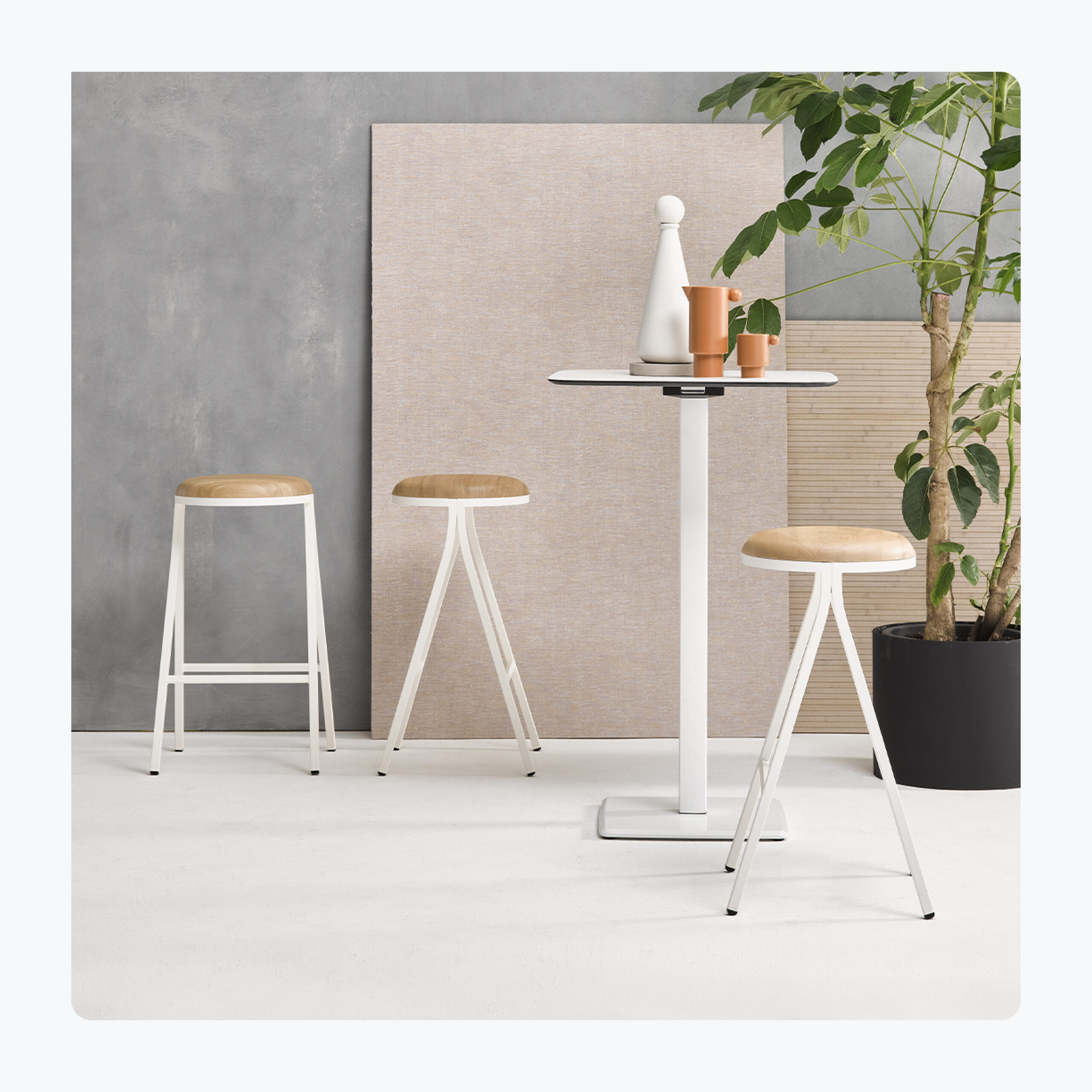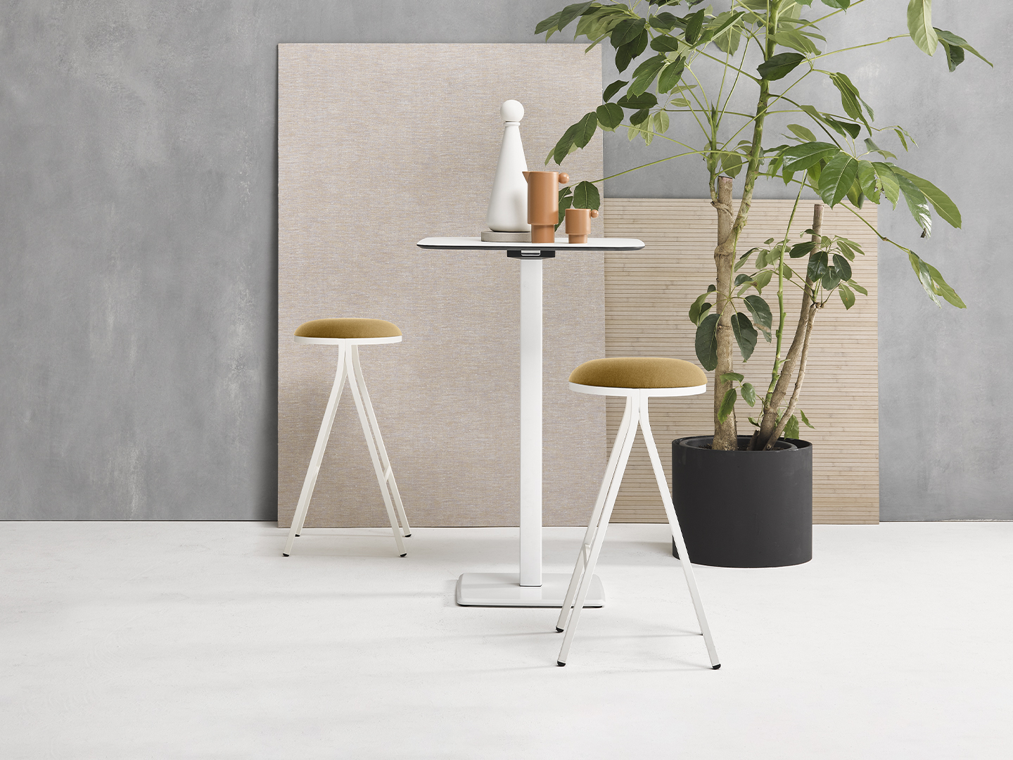 Dotti is available in a range of heights and adapts effortlessly to a variety of settings. Dotti Low offers comfortable seating at a desk or workstation. Dotti Counter is ideal for use at a counter or reception desk. Dotti High feels perfectly at home at the bar or at a high worktable.