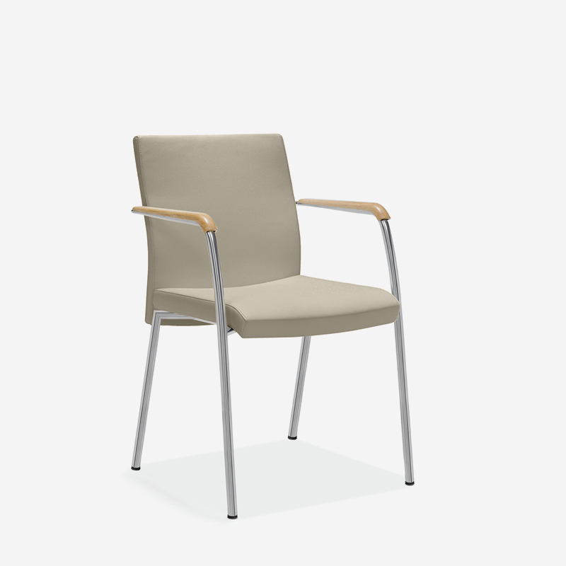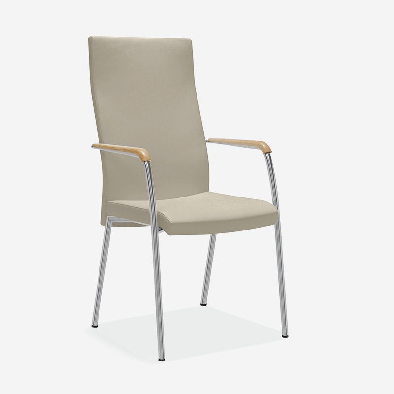 Iris is a luxurious chair, which, thanks to its excellent sitting comfort, fits in every meeting room, company restaurant and office. Iris is a four leg model and also available with a high backrest for even more comfort.