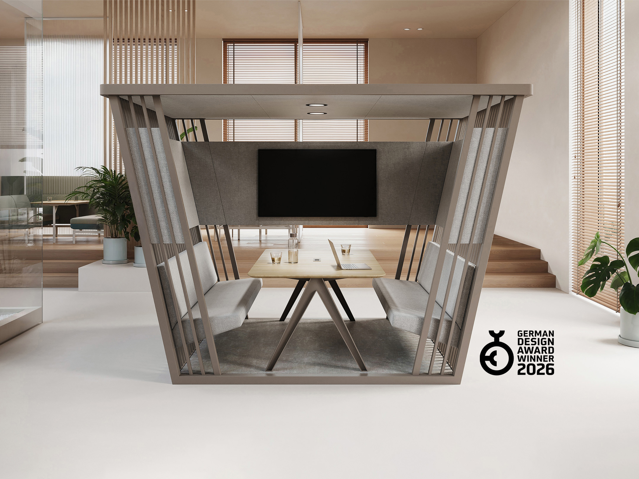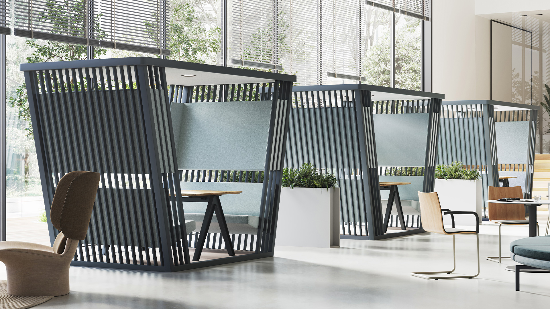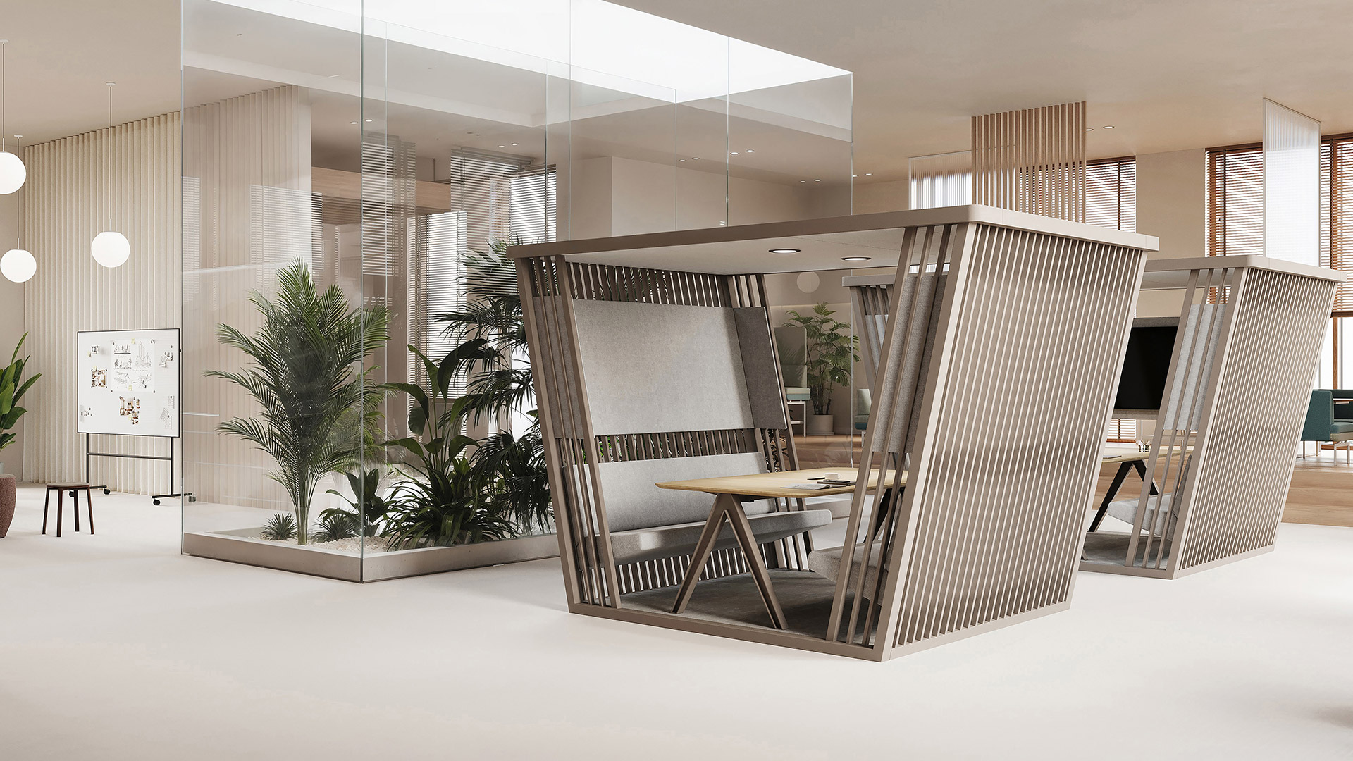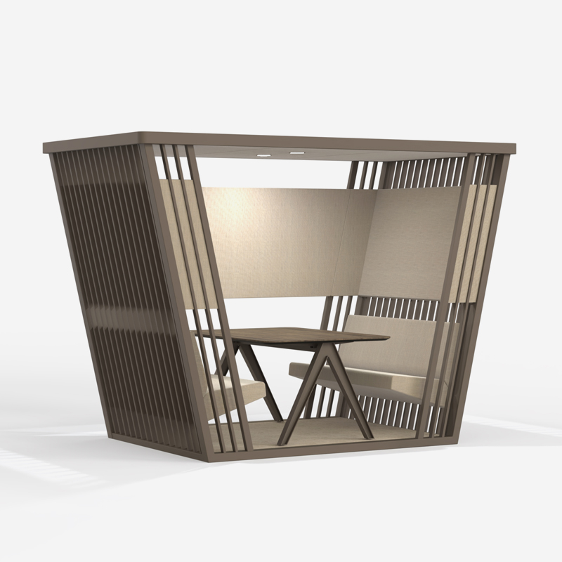Kabanna is a semi-closed workspace and meeting pod designed for focus and quiet within open environments. It offers a balanced sense of privacy and openness, creating a comfortable place for concentrated work or small meetings without fully closing off the space.