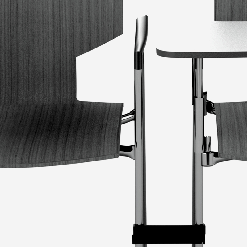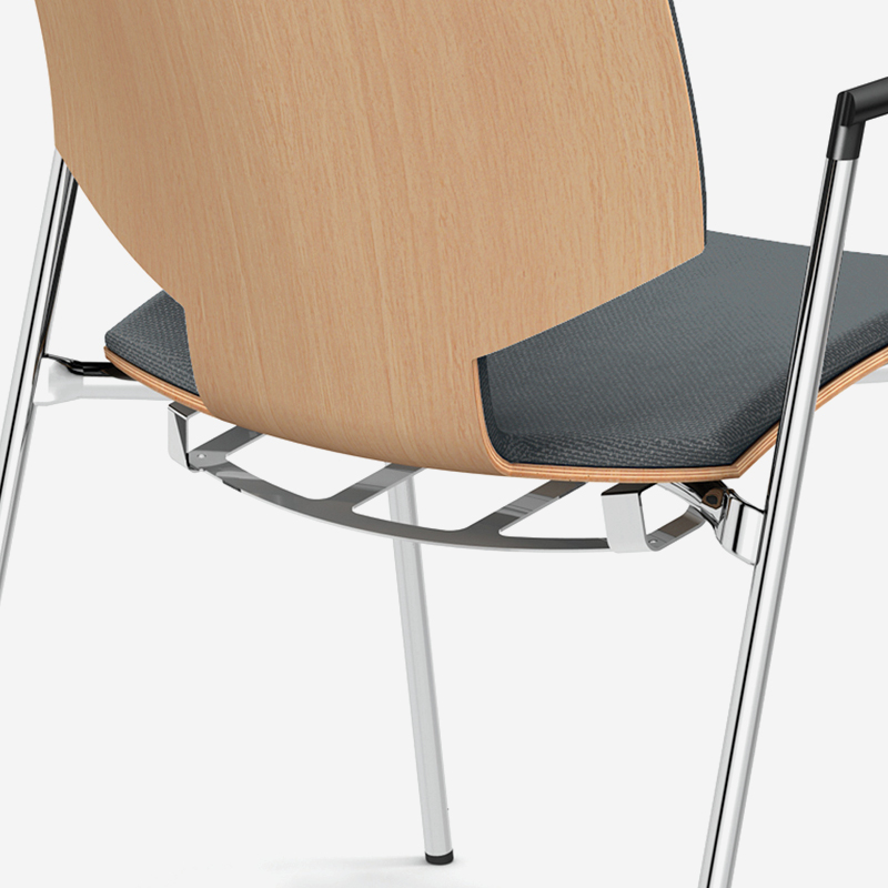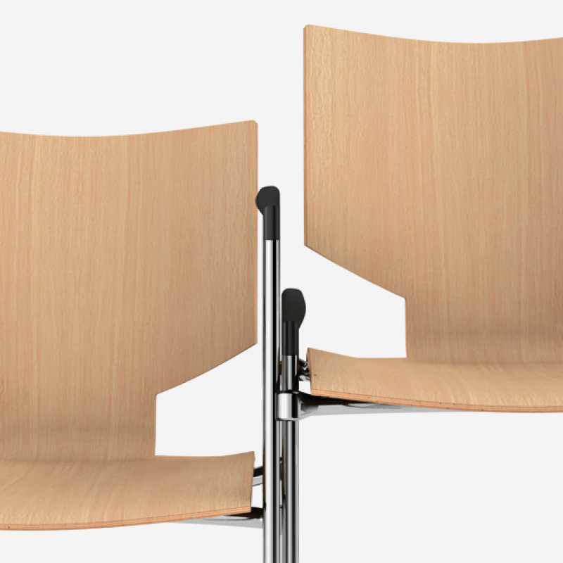 In addition to effortless horizontal linking, Lynx offers fast and efficient vertical stacking. All variants stack with ease, allowing up to 48 chairs to be stored in just 1.5 square metres. The dedicated stacking guide ensures stability and ease of use, while preventing contact between seats to reduce the risk of damage.