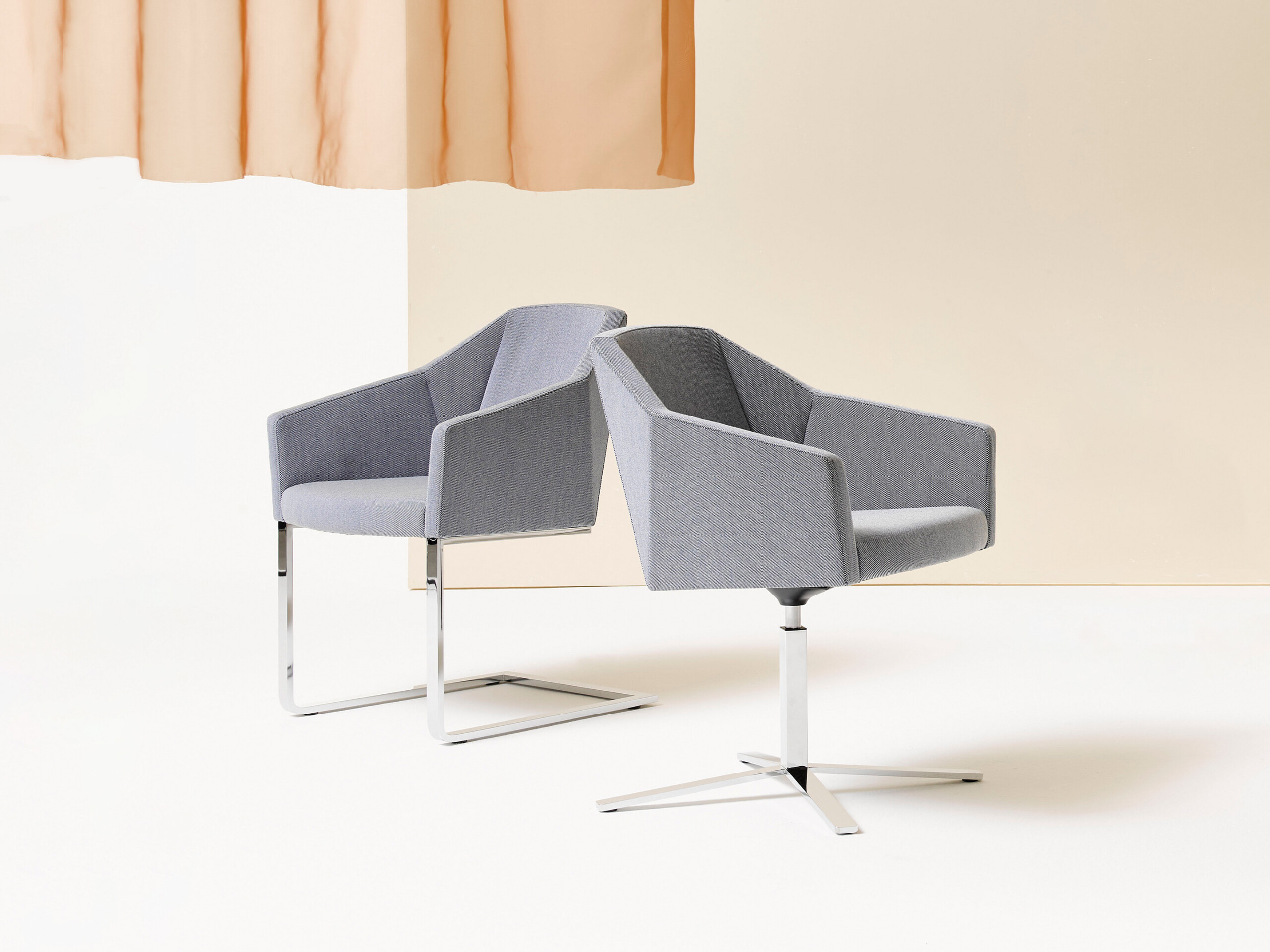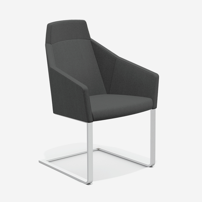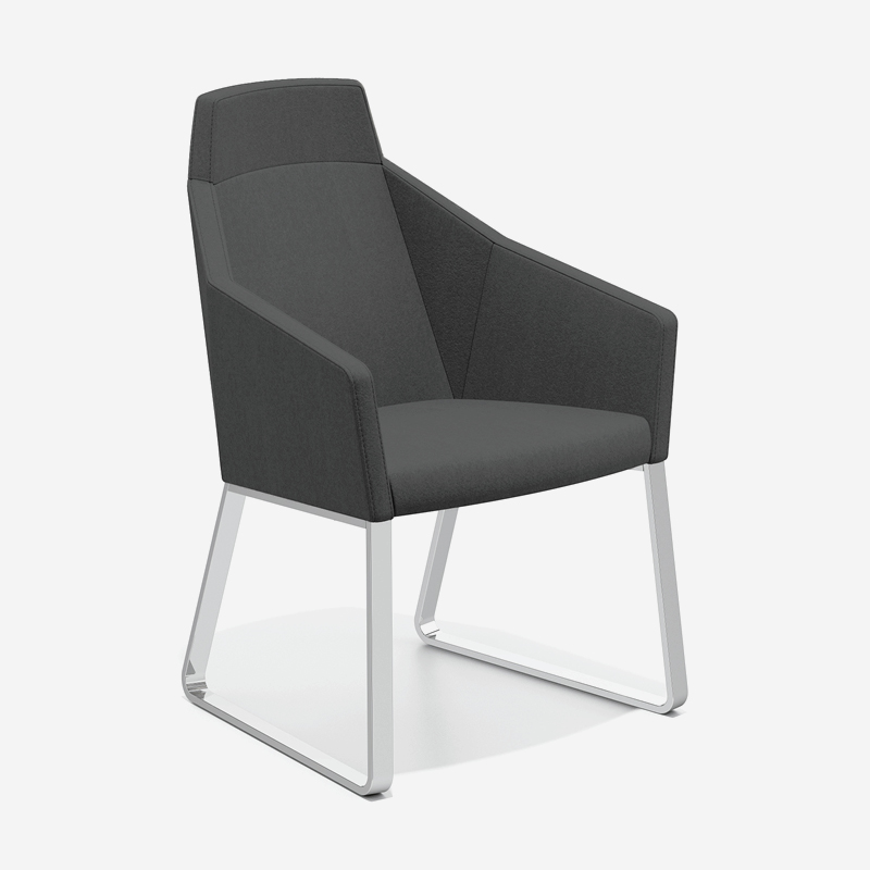 Viewed from any angle, the Parker IV makes a refined and confident statement. The polished flat steel frame, finished in high-gloss chrome, accentuates the distinctive faceted shell and enhances the interplay of light across its surfaces. The result is a chair that combines sculptural clarity with a sophisticated presence, perfectly suited to restaurants, executive offices and contemporary professional interiors.