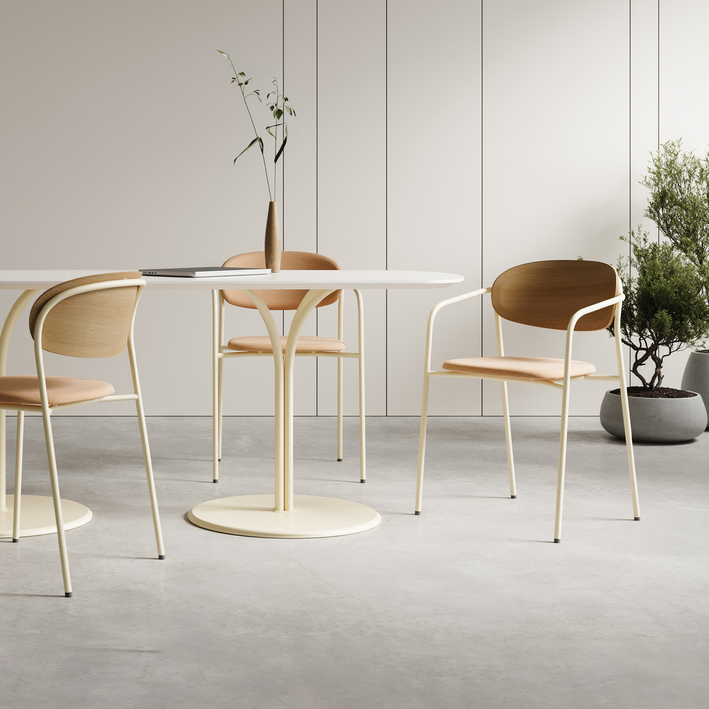 Senna integrates versatility and refinement into modern contract furnishings. This programme is designed with an eye for detail. All models share the soft design language, with a blind mounted seat and backrest on a slender steel frame. The high-quality materials are durable and resistant to intensive use. From informal conversations at a poseur table to a lunch in the company restaurant, Senna is a stylish furniture solution for any interior.