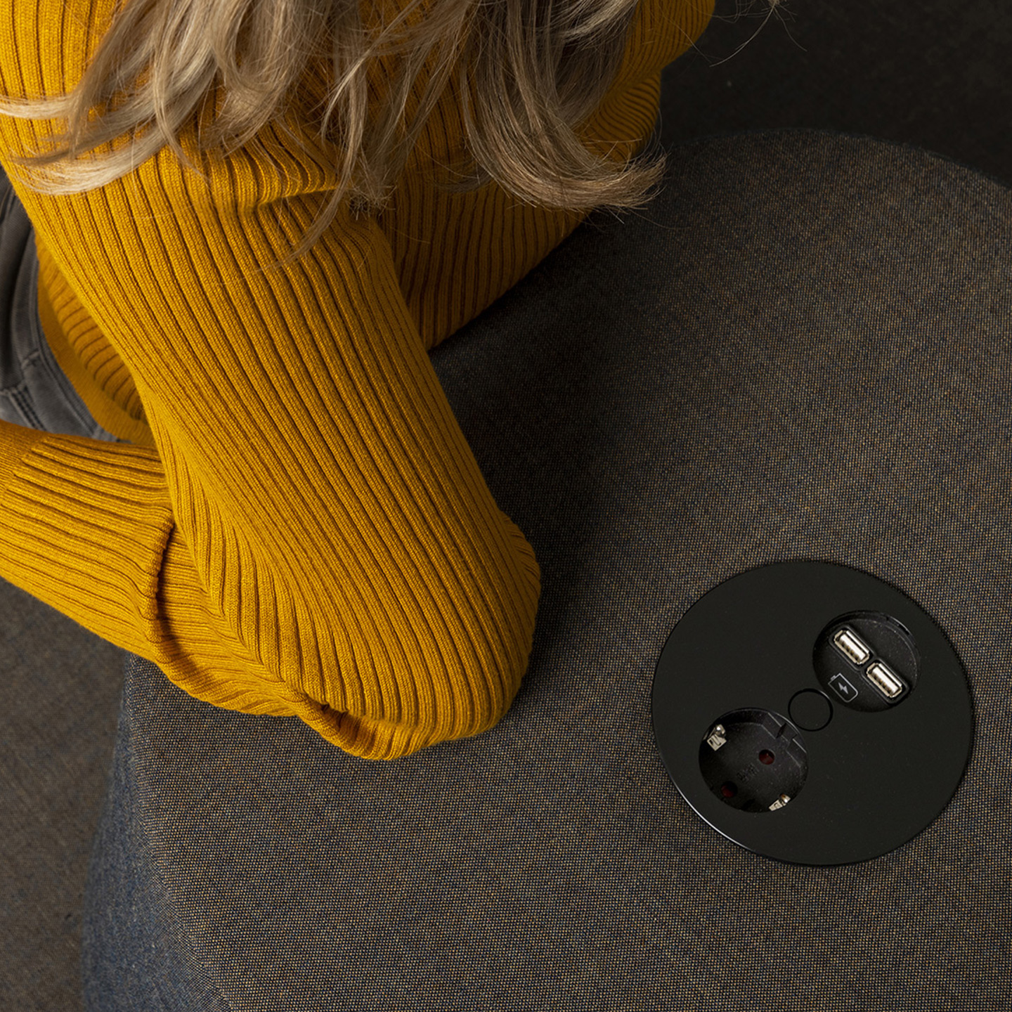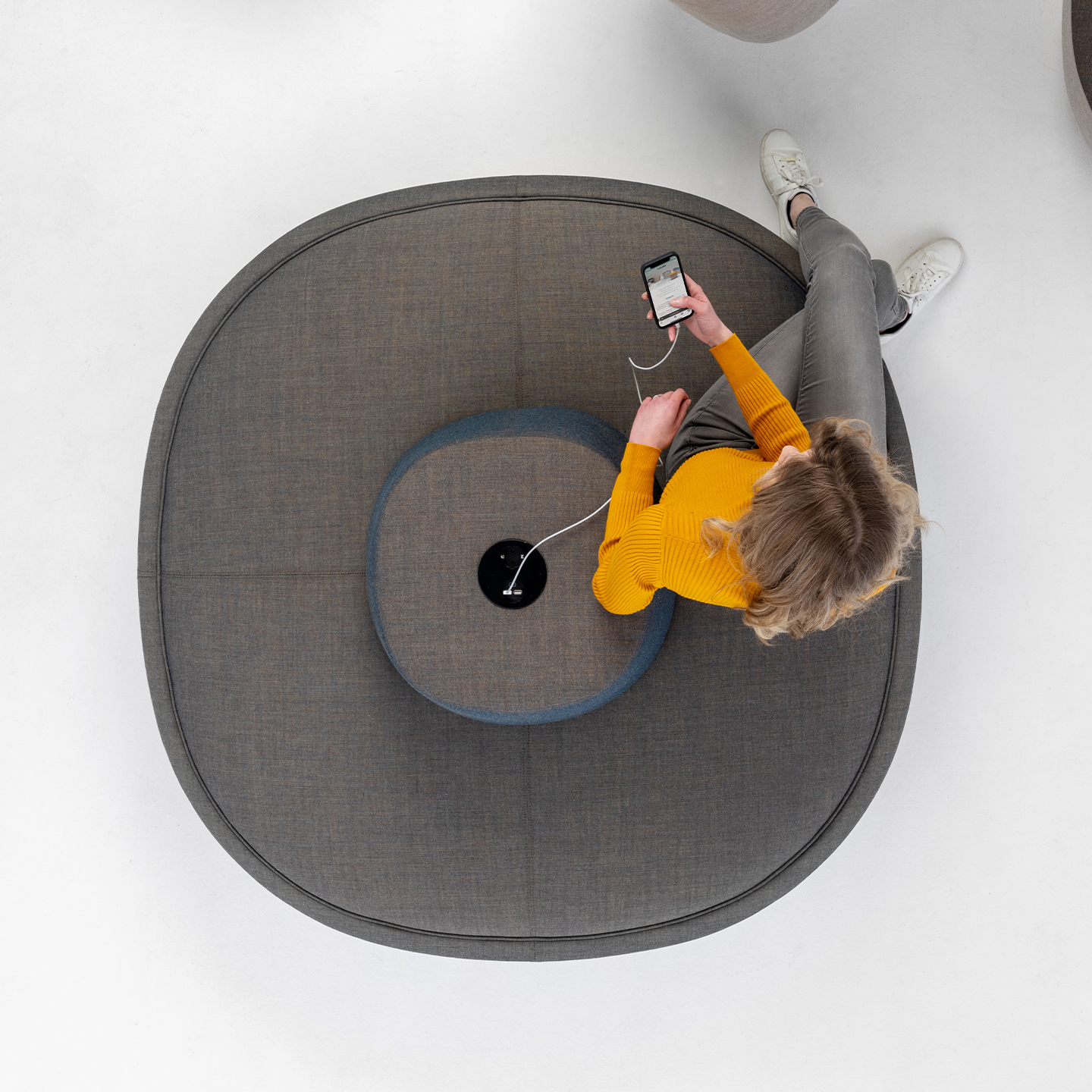 The Tonica one-seater can be equipped with a practical storage function for tablets and magazines, among other things. The seating islands and table element can be enhanced with electrification or wireless charging.